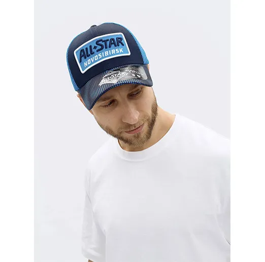 Бейсболка с объемной вышивкой логотипа матча звезд с сеткой и пластиковым фиксатором.